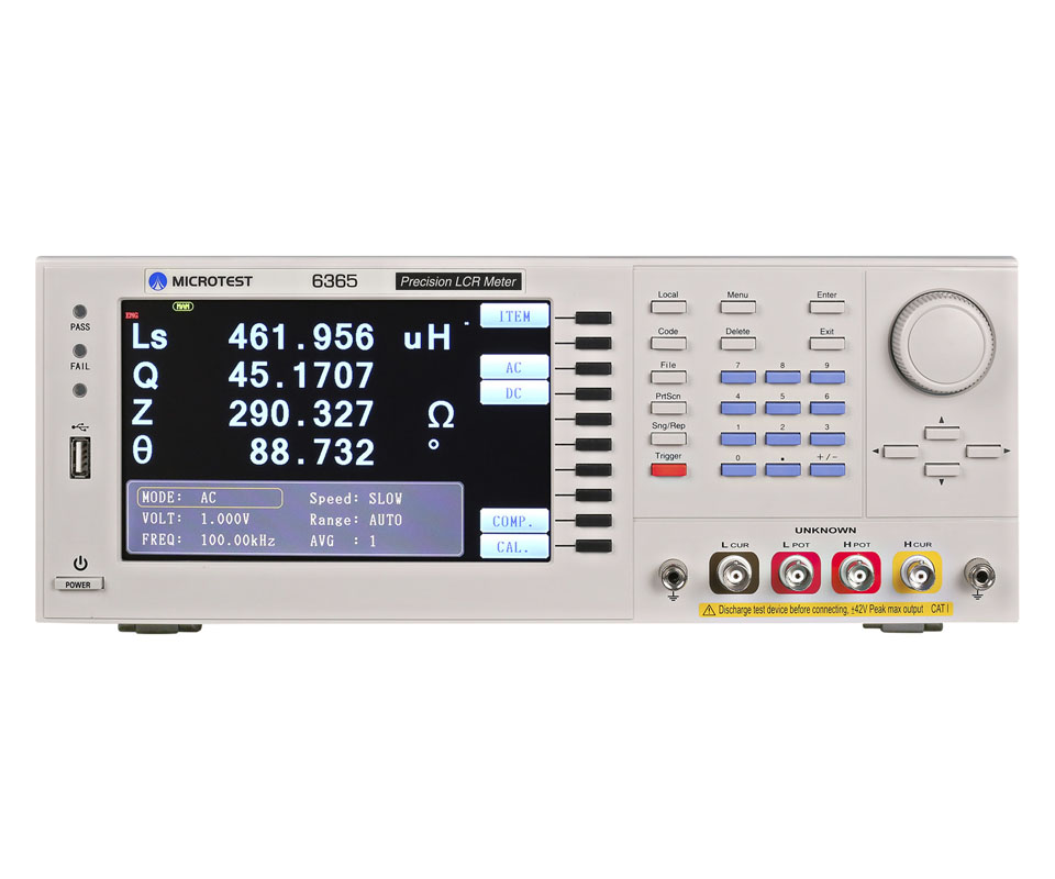 6365經(jīng)濟(jì)型 LCR 電橋具備高精確度、速度,且經(jīng)濟(jì)型多功能,測(cè)試頻率范圍從10Hz~200kHz?;揪_度±0.05%,螢?zāi)划嬅婵梢酝瑫r(shí)顯示四個(gè)參數(shù)。具多步列表功能,最多可以設(shè)定8組。低頻率6365A (0.1Hz~200kHz)可量測(cè)容量大的鋁電解電容。支援USB Host、RS-232、GPIB、Handler、LAN等介面??蛇x購(gòu)電腦連線軟體進(jìn)行圖形繪圖分析。適用于生產(chǎn)制造、品?;蜻M(jìn)料檢驗(yàn)或自動(dòng)化檢測(cè)部門。